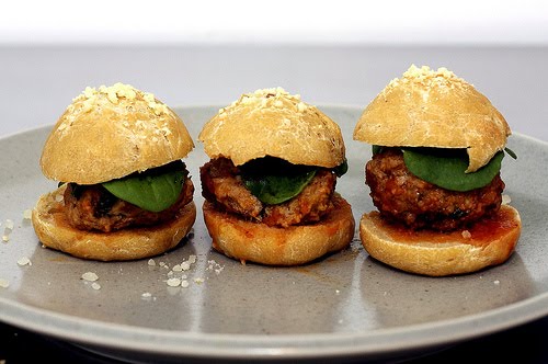 - 18 very small soft rolls, split horizontally, or Roasted Garlic Buns (recipe below)