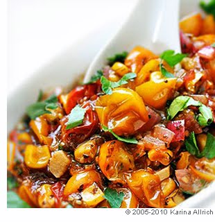 If you cannot find these tiny heirloom yellow tomatoes, any grape or cherry tomatoes will do. The roasting coaxes fresh tomato salsa from bright and acidic into complex, subtle and sweet. If you don't care for cilantro, try using basil instead, and serve this salsa as a bruschetta topping on toasted gluten-free bread rubbed with a clove of fresh garlic.