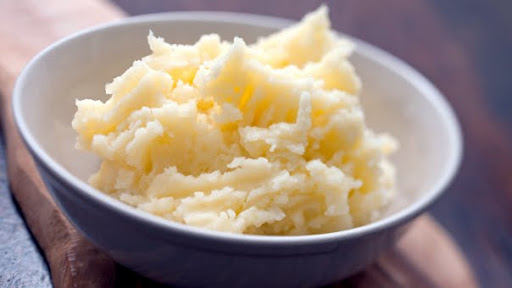 2. In a large pot, add the potatoes and cover amply with cold water. Bring the water up to a boil and reduce to a simmer. Add a generous pinch of salt to the water and allow the potatoes to cook until tender when pierced with the tip of a knife, 15-20 minutes. Pour the water and potatoes into a colander placed in the sink to drain off all of the water. Return the same pot to the heat and add the milk. Bring the milk to a simmer and gingerly add the potatoes back into the pot. Season with salt to taste and whisk in the stick of butter. Whisk until all of the ingredients meld together. Taste for seasoning. Remove from the heat.