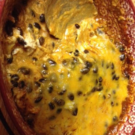 Spray a 2-quart casserole dish with non-stick cooking spray. Cut tortillas into 1-inch-long strips and line the bottom of the dish with them. Top with a layer of the chicken filling, then the black beans, then the green chilies, repeat another layer, then finish with the enchilada sauce.