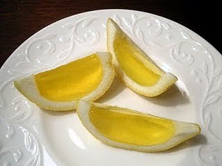 Once the Jello is firm, and you're ready to serve, cut each half into three slices. Turn the lemon halves over on a cutting board and then make each slice in one fluid motion using a very sharp, warm, non-serrated knife. Share with friends and enjoy!!
