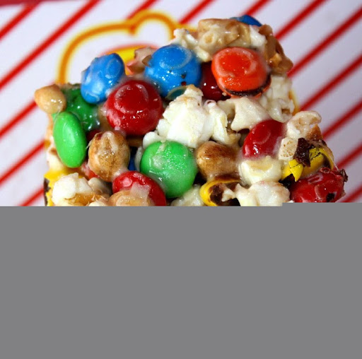 2. In a large bowl, combine the popcorn, M&M's and peanuts. Pour marshmallow mixture over popcorn and mix well. Press into two greased 9x13 inch pans. Let stand for 2 hours or until set.