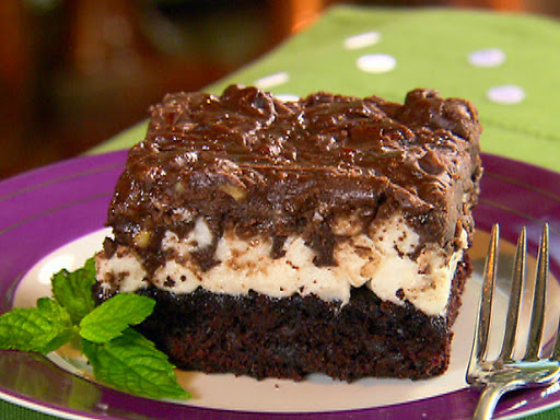 While the cake is baking, make the icing by melting the butter in the cocoa and milk over low heat. Bring the mixture to a boil, then remove from the heat. Stir in the confectioners' sugar. Slowly mix in the nuts and the vanilla. Take the cake from the oven, and when it cools a bit cover it with miniature marshmallows. Pour the warm icing over the cake and the marshmallows. Cool the cake before serving.