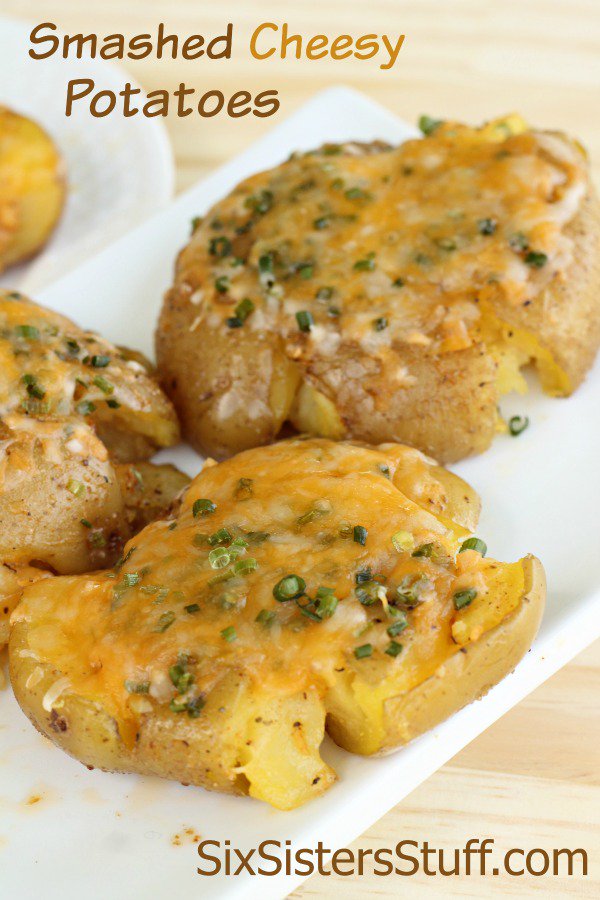Bake for about 5 minutes. Then pull out of oven and top all of the potatoes using 1 tablespoon of chives. Then sprinkle cheese over all the potatoes, then sprinkle the other tablespoon of chives evenly over the potatoes.