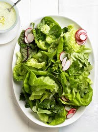2. Toss together lettuce and herbs; transfer to serving platter. Top with sliced radishes; pass dressing. Makes 6 to 8 servings.