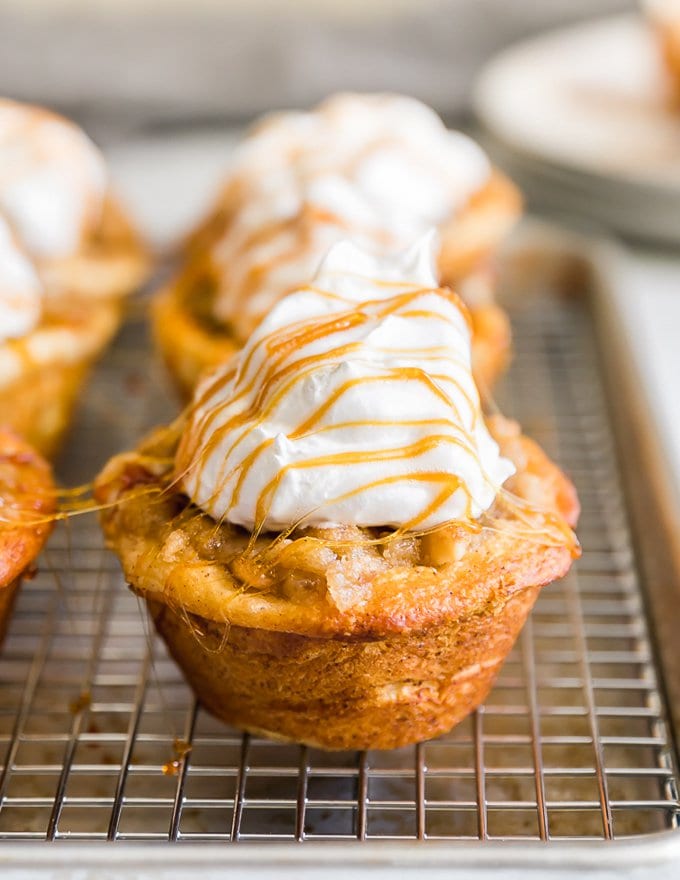 Apple Pie Cupcakes are one of the most delicious, EASY recipes on The Cookie Rookie. Apple Pie filling is stuffed into a pre-made cinnamon roll base to create the ultimate EASY Caramel Apple Cupcakes. This Cinnamon Roll Apple Pie Cupcakes Recipe has been a winner at our house, especially for Summer and Fall!
