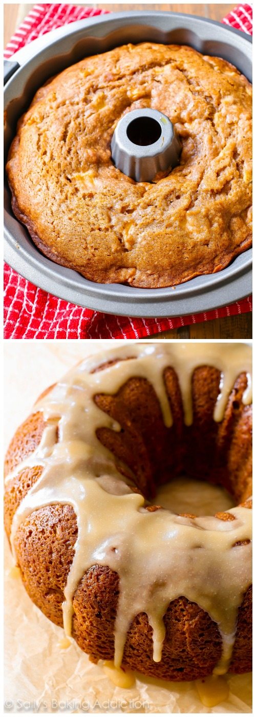 Tender and moist homemade apple bundt cake smothered in a buttery brown sugar glaze. My favorite cake for the crisp fall weather.