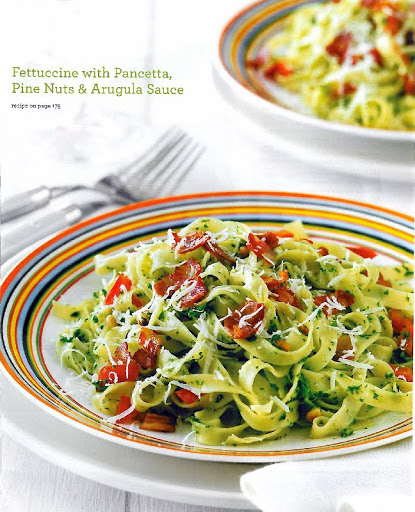 Fettuccine with Pancetta, Pine Nuts & Arugula Sauce