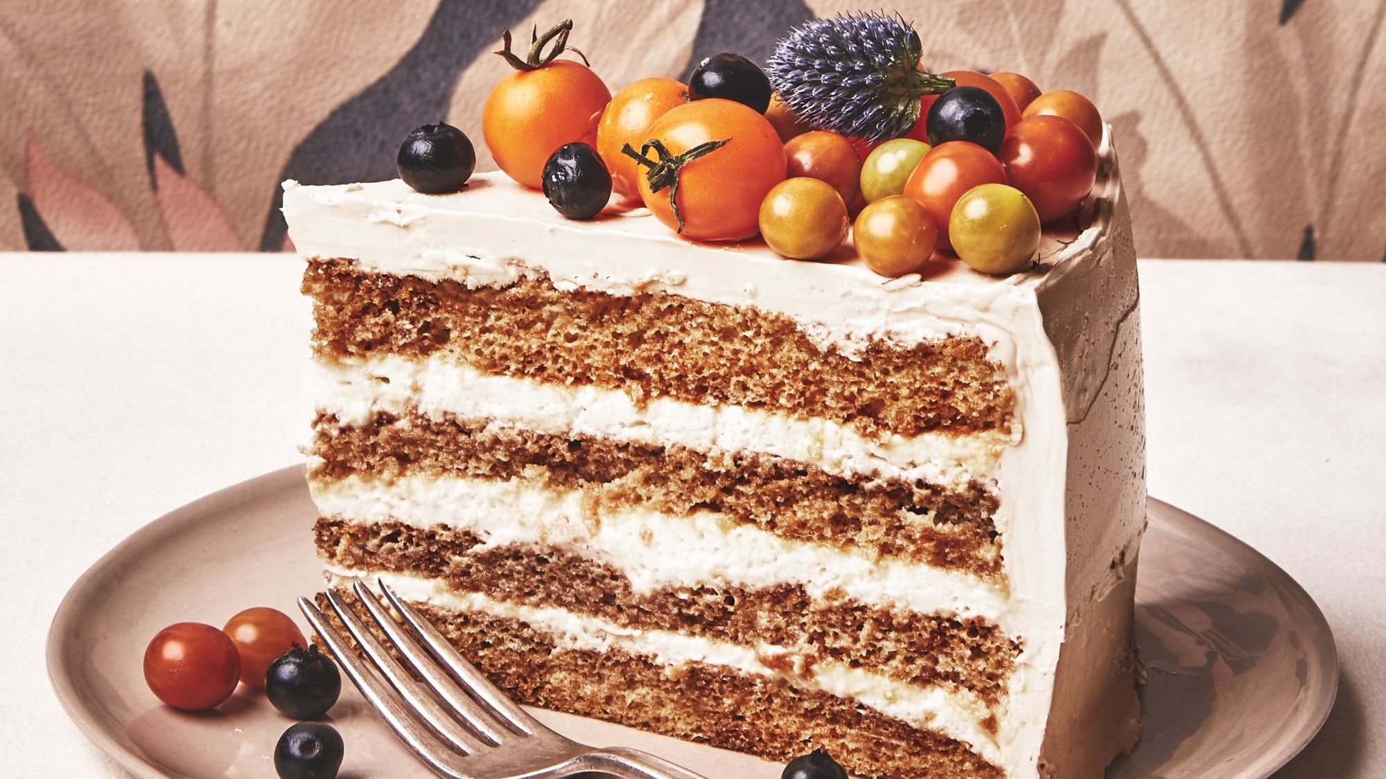 Do Ahead: Cake can be made 2 days ahead. Chill until frosting sets, then cover loosely with plastic wrap. Let sit at room temperature 1–1½ hours before slicing.