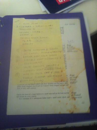 Saute lobsters and shrimp in shells. Flame with brandy.