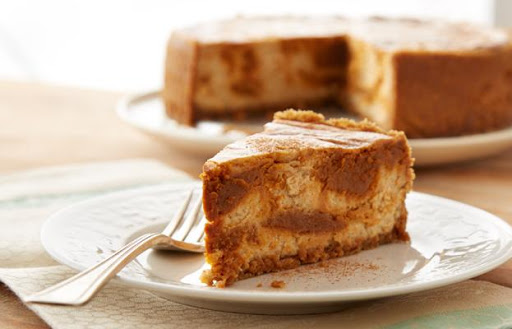 - 4 4 to . Spoon half of cream cheese mixture into crust; spoon half of the cinnamon mixture over top. Swirl with knife or metal spatula. Top with remaining cream cheese mixture. Spoon remaining cinnamon mixture over top; swirl to outer edges of pan.