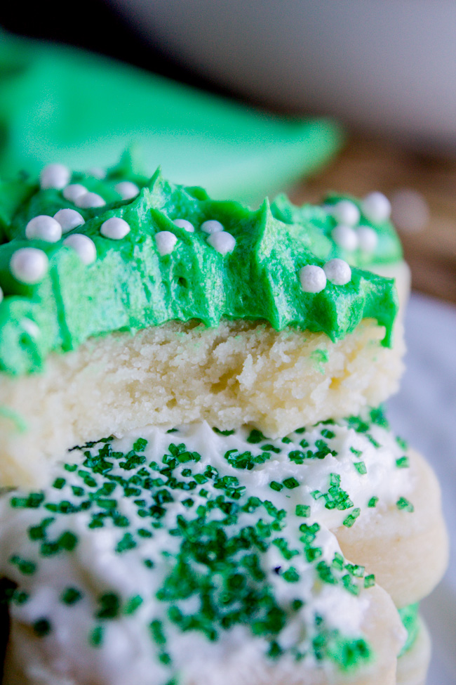This is enough frosting to do about 2 dozen cookies, but that totally depends on your cookie shape. Frost the cookies (Here's the cookie recipe) and store in a tupperware on the counter for 2-3 days.