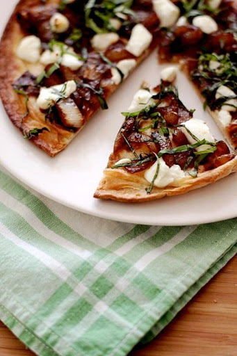Appetizer Recipe: Flatbreads with Goat Cheese, Caramelized Onions, and Basil Recipes from the Kitchn