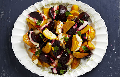 Heat oven to 400°. Place beets in a 9” x 13” ovenproof dish; toss with oil, salt, and pepper. Cover tightly with aluminum foil; bake until tender, 40 minutes. Meanwhile, mix crème fraîche with orange zest and juice. Season with salt and pepper and set aside. To serve, transfer beets to a serving platter and drizzle with dressing.