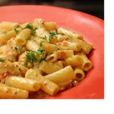 Boil your water –and start your pasta. while finishing for the sauce. Add your Rigatoni or pasta and cook al dente.