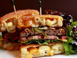 Heat a large frying pan or skillet on high, add in vegetable oil and lightly pan fry breaded mac discs until golden on both sides. Drain on paper towel lined plate.