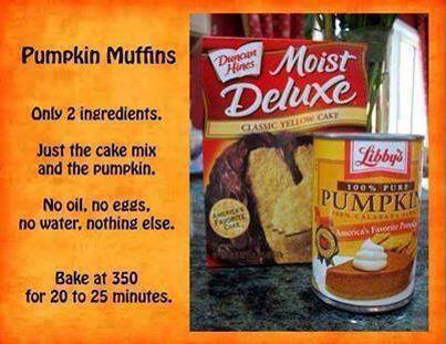 Just add cake mix and pumpkin, combining well. No oil, no eggs, no water, just those two ingredients.