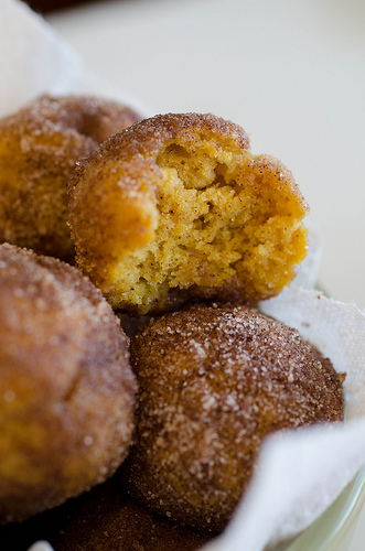 Remove the muffins from the oven and allow to cool for 2 minutes, or until just cool enough to handle. With the melted butter in one bowl and the sugar and cinnamon combined in another, dip each muffin into the butter then roll in the cinnamon sugar to coat. Repeat with remaining batter. Serve immediately.