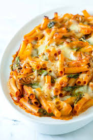 Preheat oven to 375°F. Cook rigatoni pasta according to package directions. Drain and transfer to a large bowl.