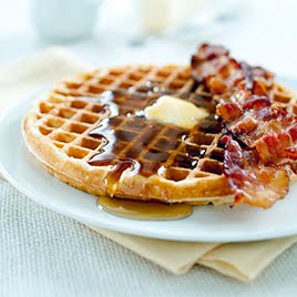 2. Heat waffle iron and bake waffles according to manufacturer’s instructions (use about 1/3 cup for 7-inch round iron). Transfer waffles to rack in warm oven and hold for up to 10 minutes before serving with butter and maple syrup.