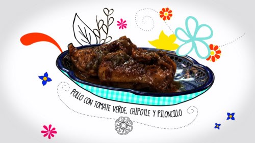 Add the onion to the skillet and cook, stirring for about 3 to 4 minutes, until softened. Add the garlic and saute until fragrant, for about 20 seconds. Make room in the pan and add the tomatillos. Let it cook all together, for about 6 to 8 minutes. Add the pilocillo, the chipotles and their sauce and stir well. Once it comes to a simmer incorporate the chicken pieces along with the chicken broth and cook for about 30 to 35 minutes, stirring occasionally. The sauce should be chunky and thick, and the chicken fully cooked.