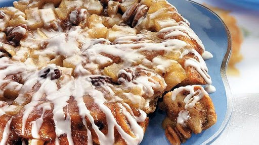 2. Separate dough into 8 rolls. Cut each roll into quarters; place in large bowl. Add remaining 1/2 cup apples and pecans.
