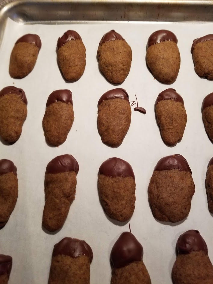 Dunk one end of each shortbread log into the melted chocolate. Set dunked cookies on a wire rack over a piece of paper toweling, and let the chocolate firm (I used parchment paper on a cookie sheet). (They can be refrigerated if the kitchen is warm) Store in a cookie tin for up to a week.