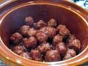 Mix ingredients; form into small balls. Arrange in a single layer in a microproof baking dish. Cook on 90% power (saute) 5 to 6 minutes. Allow some fat to drain off when moving meatballs to crock pot.