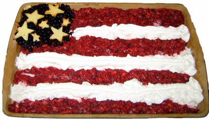 Pile a mess of blueberries into the top left corner and sprinkle toasted pound cake stars onto the blue field.
