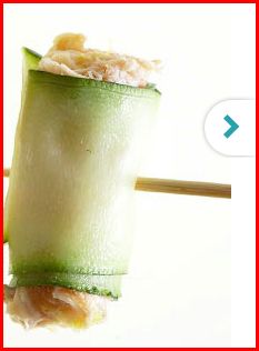 3. Lay zucchini strips on a flat surface. Spoon about 2 teaspoons of the salmon mixture on one end of each zucchini strip. Roll up zucchini strips, starting from the end with the salmon mixture. Secure with toothpicks or cocktail picks if needed. Serve immediately or cover and chill for up to 3 hours.