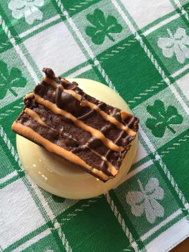 Place chocolate chips and 1 tsp of the oil in a small bowl. Microwave on high 1 minutes. Stir until melted. Place in a small ziptop bag and make a tiny snip in one corner. Pipe over cooled brownies. Repeat with the butterscotch chips and remaining 1 tsp oil.