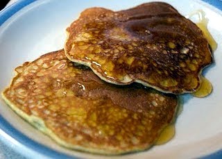 Mix it all together in a bowl (get your whisking arm ready!), and then pour onto a hot griddle and cook like normal pancakes. The batter can be a bit thin, so they cook up quickly; watch carefully!
