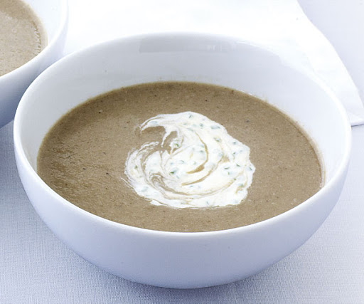 Mushroom and Parmesan Soup with Chive Crème Fraîche