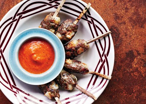 Build a medium-hot fire in a charcoal grill, or heat a gas grill to high. Brush kebabs with oil and grill, turning occasionally, until nicely charred and just cooked through, about 6 minutes per side. Serve with Red Harissa.
