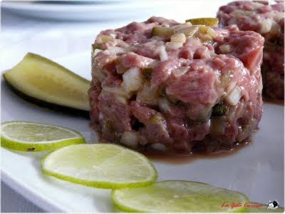 5- Servir la carne tártara en forma de timbal acompañada con rebanadas de aguacate y tostadas