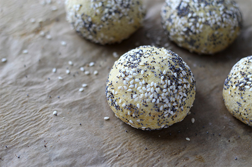 Optional: In a small bowl combine Sesame seeds, poppy seeds and garlic powder, roll each ball lightly in the seed mixture.