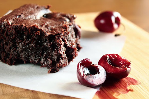 In a medium bowl, whisk together the eggs, 1 cup sugar, and vanilla extract until well blended. Add the melted chocolate and mix until incorporated. Fold in the flour and baking powder. Stir in the cooled, roasted cherries. Pour brownie batter into prepared pan and bake for 15-20 minutes, or until brownies do not jiggle in the center when the pan is shaken (even when baked completely, a toothpick may not come out clean). Do not overbake! These brownies are best when slightly under-baked.