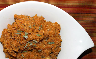2. In a medium-sized bowl, combine cooked quinoa with salt, pumpkin, sage, nutritional yeast, rosemary, thyme, and pepper and stir well to combine.