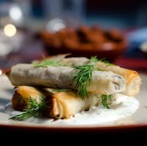 PHYLLO SPINACH CIGARS w/TZATZIKI