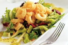ENSALADA DE KIWI CON TEMPURA DE CALAMARES