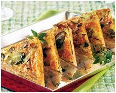 This quiche-like delight has a cheddar shortbread crust. Refrigerate squares 4 hours to set. Reheat to serve or serve at room temperature.