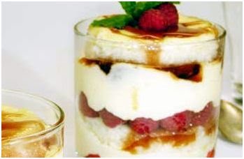 3. For custard, whip cream to medium peak and fold in vanilla. Chill. Whisk egg yolks, sugar, sherry and lemon juice over a pot of gently simmering water until doubled in volume and holds a ribbon when whisk is lifted. Remove from heat and whisk in mascarpone until smooth. Fold in whipped cream and chil/l until ready to serve.