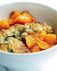 Using two spoons, form 3-tablespoon mounds of the topping and arrange them evenly over the peaches. Brush with cream and sprinkle with the turbinado sugar. Bake the cobbler for 50 minutes, until the topping is golden brown and the fruit is bubbling. Let cool slightly before serving.
