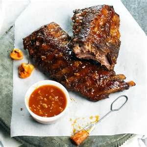 In a small bowl, stir together all the ingredients except the ribs; set aside.