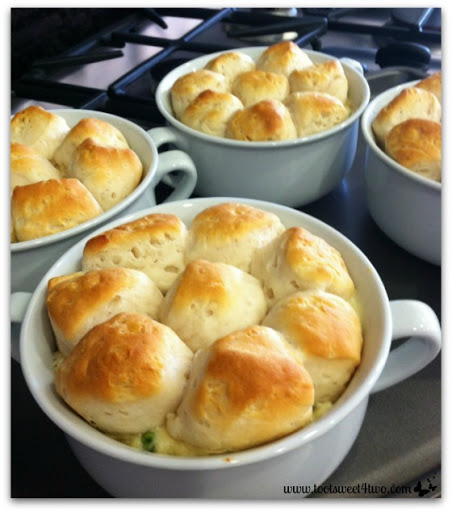 Divide creamed veggie/turkey mixture into 4 six-inch individual, oven-proof bowls.