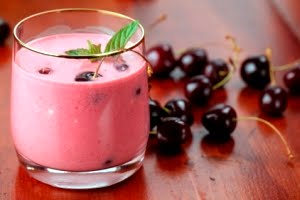 Combine the cherry juice, banana, milk or yogurt with fat-free milk, ice and vanilla in a blender. Blend until smooth.