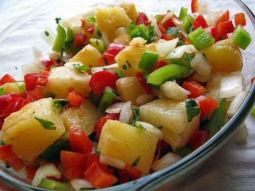 Today I have for you a real treat for summer. A perfect slightly spicy, light, and colorful summer snack – pineapple salsa. Pineapple salsa is the perfect combination of fruits and vegetables with a little kick. This recipe also happens to be very good for you. Getting the right amount of fruits and vegetables everyday is very important in a healthy diet. This recipe is a great source of fiber as well. Cayenne pepper gives the recipe a little kick but if you like something even spicier you can add a minced jalapeno pepper into the mix. If you are looking for a great party snack, this could be the recipe for you. It goes great on chips, tacos, fish, and many other things. Enjoy.
