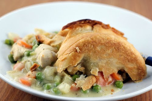 Step 1: Pre-heat the oven to 425 degrees. Grease a 9 inch pie dish and press one of the pie crusts onto the bottom of the pie dish, set aside. In a saucepan add turkey or chicken (if the meat is already cooked, just add it in the last couple minutes of cooking to heat it through). Add carrots, peas, and celery. Add enough water to the pan to cover the meat and vegetables and bring to a boil. Boil for 15 minutes, remove from heat, drain and set aside.