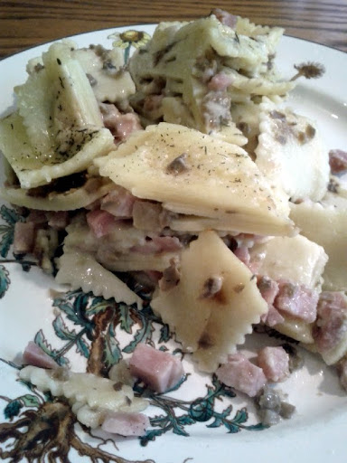 Ham, Mushroom, Pasta, and Cheese Casserole