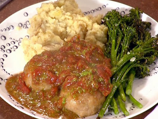 While the broccolini is roasting, add tomatoes to a small pot or skillet, mash with a potato masher and season with salt and pepper. Heat over medium heat then simmer to reduce about 8 to 10 minutes.
